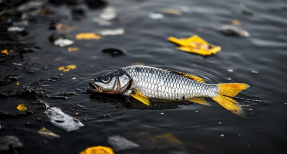 Fish die belly upward, and float to the surface. It's their way of falling.